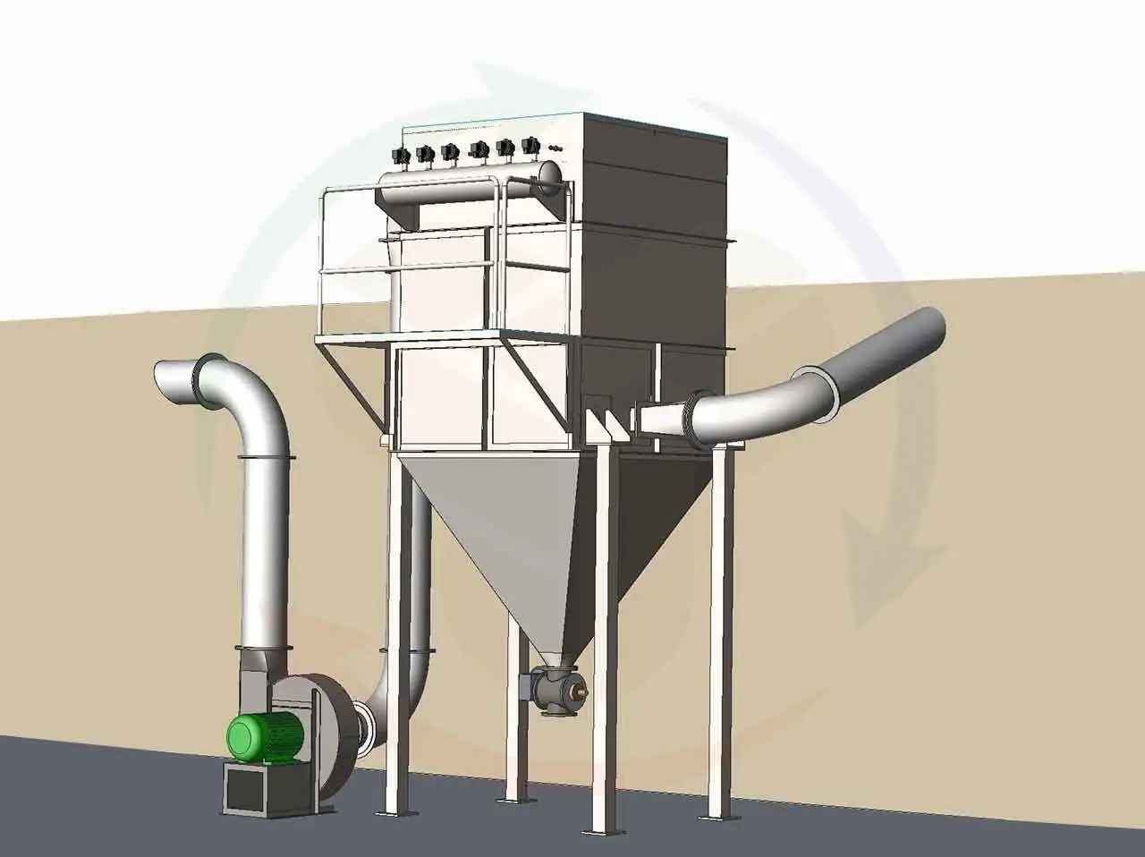 Advanced dust collector that uses pulsed air to clean filter media for continuous operation.